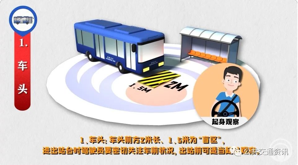 “盲區(qū)”是由于視線受到遮擋,駕駛員無法直接看到的車輛外部的區(qū)域。公交駕駛員運營時要防范各類“盲區(qū)”風(fēng)險。
