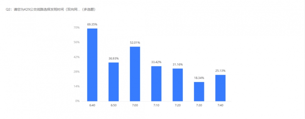 2022年11月18日,市公交集團(tuán)對(duì)《K29公交線(xiàn)路運(yùn)行方案》進(jìn)行了問(wèn)卷調(diào)查,截止2022年11月23日12時(shí),本次問(wèn)卷調(diào)查結(jié)束。K29公交線(xiàn)路開(kāi)通時(shí)間擬定為2022年11月28日,營(yíng)運(yùn)方案以市民投票結(jié)果執(zhí)行。