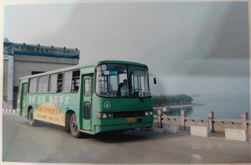 ▲90年代末,荊門市?;酃煌\噲觥?路車準備發(fā)車(?;邸暮樱?/p>