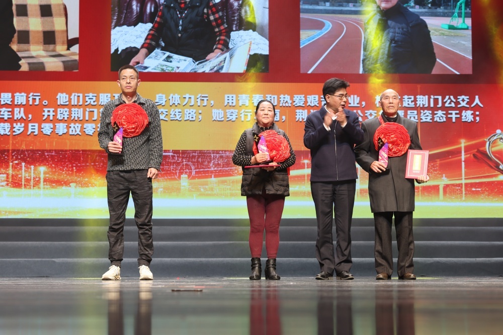 頒獎(jiǎng)環(huán)節(jié),在荊門公交發(fā)展歷程中做出過(guò)杰出貢獻(xiàn)的8名“時(shí)代標(biāo)兵”人物,被授予“崢嶸歲月”“風(fēng)華正茂”“無(wú)悔青春”時(shí)代標(biāo)兵,感謝他們一路走來(lái)的無(wú)私付出和拼搏奮斗。