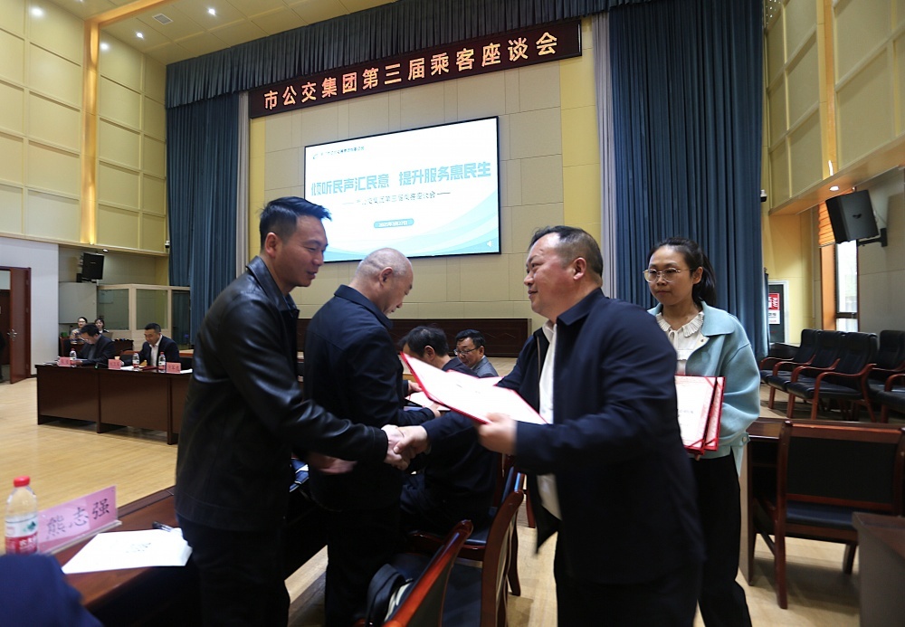座談會(huì)上,集團(tuán)黨委副書記、總經(jīng)理李曉麗宣讀了《市公交集團(tuán)關(guān)于聘任劉來斌等九名同志為行風(fēng)監(jiān)督員的通知》,黨委書記、董事長卞軍虎為劉來斌、薛旭東等9名來自社會(huì)各界的代表頒發(fā)聘書。